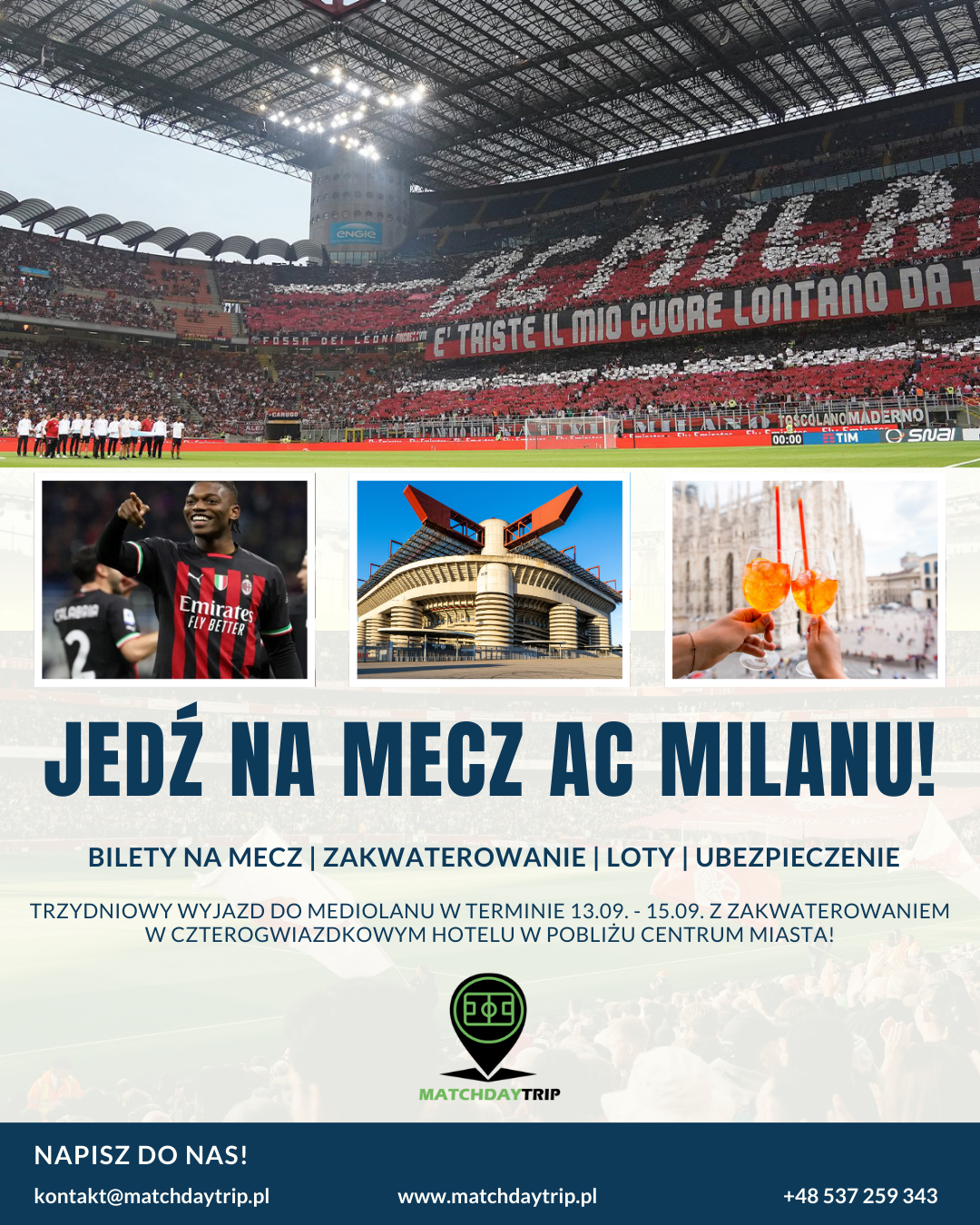 Nasz zespół przygotuje ofertę wyjazdu na każdy, wybrany przez Ciebie mecz! Napisz nam, jaki mecz chciałbyś zobaczyć na żywo, a my zajmiemy się całą resztą!
