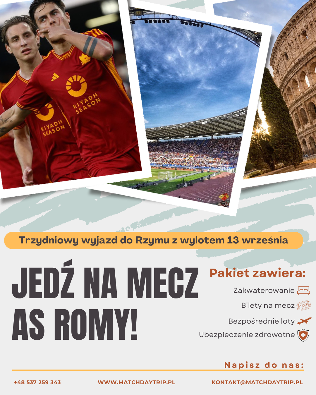 Nasz zespół przygotuje ofertę wyjazdu na każdy, wybrany przez Ciebie mecz! Napisz nam, jaki mecz chciałbyś zobaczyć na żywo, a my zajmiemy się całą resztą!