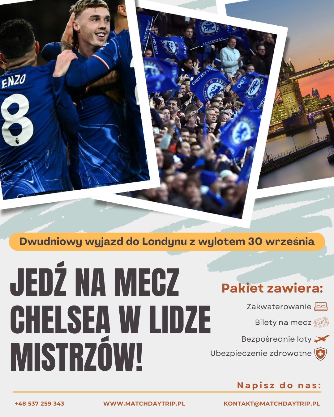 Nasz zespół przygotuje ofertę wyjazdu na każdy, wybrany przez Ciebie mecz! Napisz nam, jaki mecz chciałbyś zobaczyć na żywo, a my zajmiemy się całą resztą!