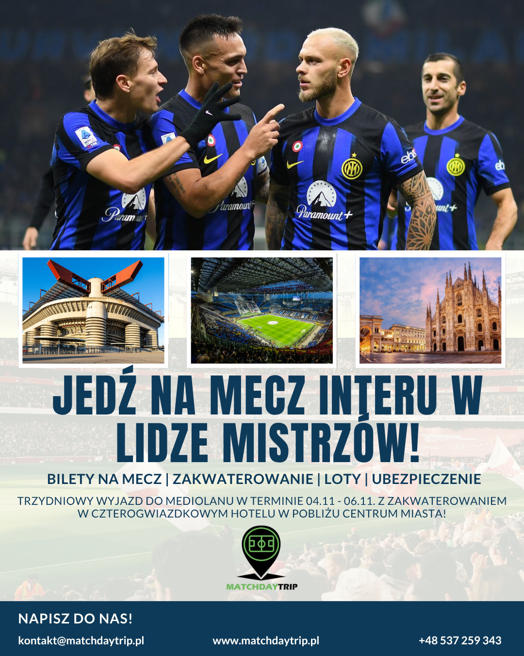 Nasz zespół przygotuje ofertę wyjazdu na każdy, wybrany przez Ciebie mecz! Napisz nam, jaki mecz chciałbyś zobaczyć na żywo, a my zajmiemy się całą resztą!