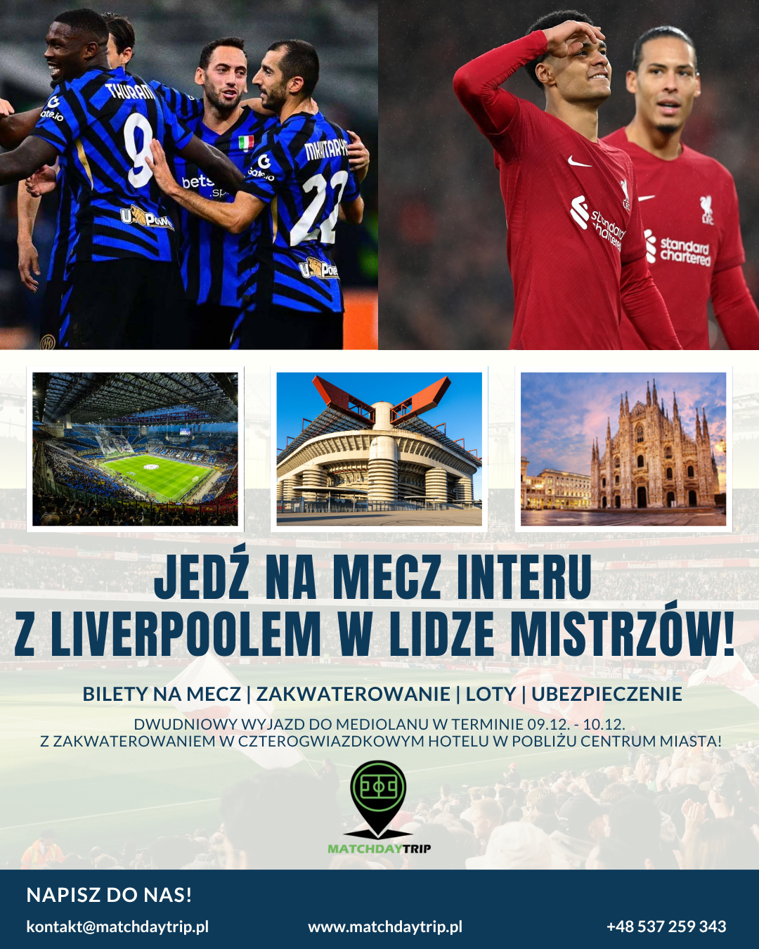 Nasz zespół przygotuje ofertę wyjazdu na każdy, wybrany przez Ciebie mecz! Napisz nam, jaki mecz chciałbyś zobaczyć na żywo, a my zajmiemy się całą resztą!