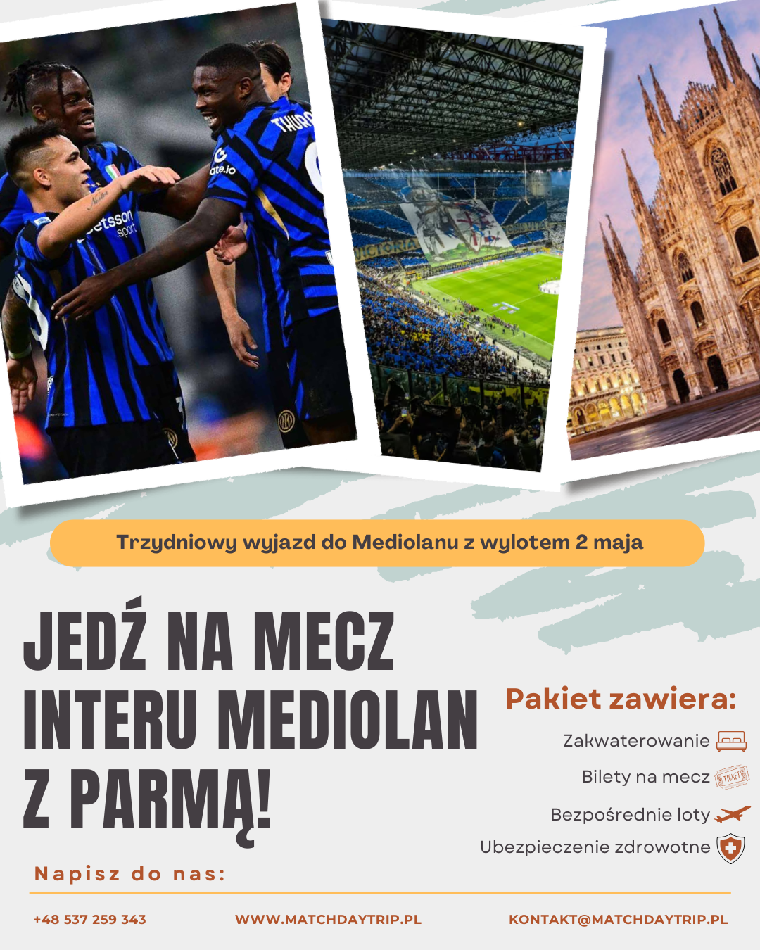 Nasz zespół przygotuje ofertę wyjazdu na każdy, wybrany przez Ciebie mecz! Napisz nam, jaki mecz chciałbyś zobaczyć na żywo, a my zajmiemy się całą resztą!